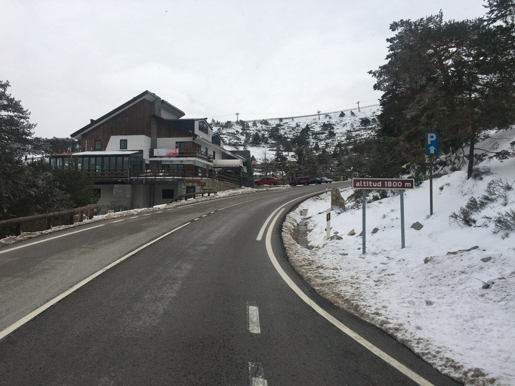 Unser Weg auf der M-601 führt uns über den Pass Puerto de Navacerrada auf 2000 müM. Hier befindet sich das gleichnamige Skigebiet kurz vor dem Start in die nächste Wintersaison. Einige Info-Tafeln stehen schon draussen.
