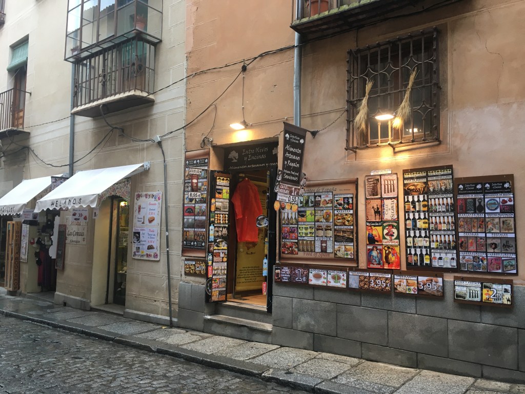Nach den Schneeflocken, fliegen uns jetzt wieder die Regentropfen in Massen entgegen. Feucht und kalt empfängt uns das kleine geschichtsträchtige Städtchen Segovia. Wir stellen unser Womo auf den Busparkplatz und begeben uns durch den sumpfigen Boden auf den nächsten Gehsteig. Das Städtchen ist mit Pflasterstein-Strassen belegt, enge Gassen führen durch das Städtchen und sehr viel Touristen sind unterwegs. Segovia ist berühmt für sein aus der Römerzeit stammende Bauwerke. So zum Beispiel das Aquädukt, Stadtmauer, das Schloss Alcazar aus dem 11. Jhrd und viele andere interessante Bauwerke.