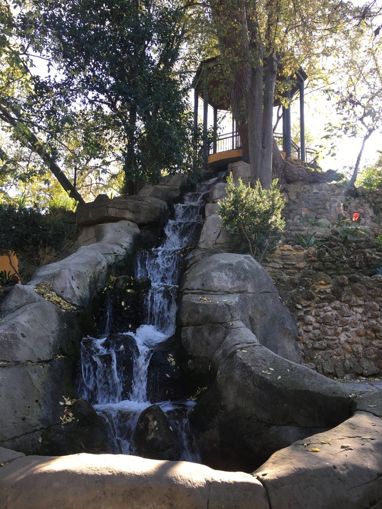 Mit unserem E-Bike begeben wir uns auf Entdeckungstour. Ich bin erstaunt über die gut angelegten Fahrradstreifen. Ein richtiges Fahrradweg-Paradies. Schnell und sicher erkunden wir vom einen Platz zum nächsten Platz. Die wunderschöne Parkanlage von Maria Luisa hat es uns angetan. Wir fahren vom schönen Rosengarten zum Löwenbrunnen. Dieser ist allerdings zur Zeit ohne Wasser. Doch gleich daneben stürzt sich ein kleiner Wasserfall vom Aussichtsplateau Gurugu herab. Gleich davor steht ein ehemaliger Baum mit Zeitgeschichte. Wir steigen wieder auf unsere E-Bikes und fahren zum fantastischen Plaza de España. Wir können uns fast nicht losreisen.